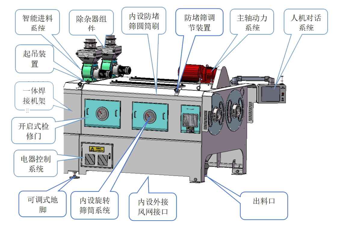 采用并聯雙體除糠防堵系統,具有產量大、效率高、動耗低等優點。